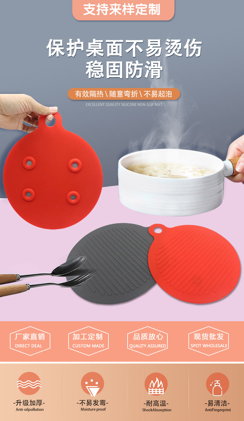 【簡介】圓形磁鐵硅膠隔熱餐墊 防燙墊 廚房防水防滑鍋墊 硅膠餐墊