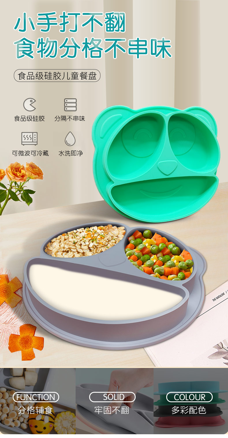 吸附式硅膠分格餐盤