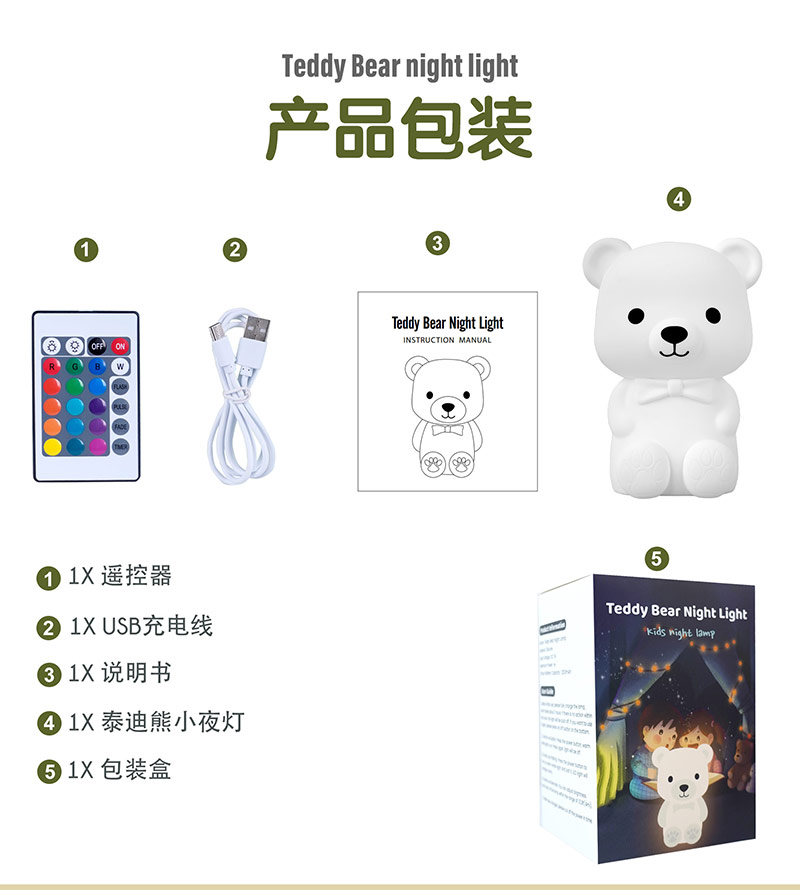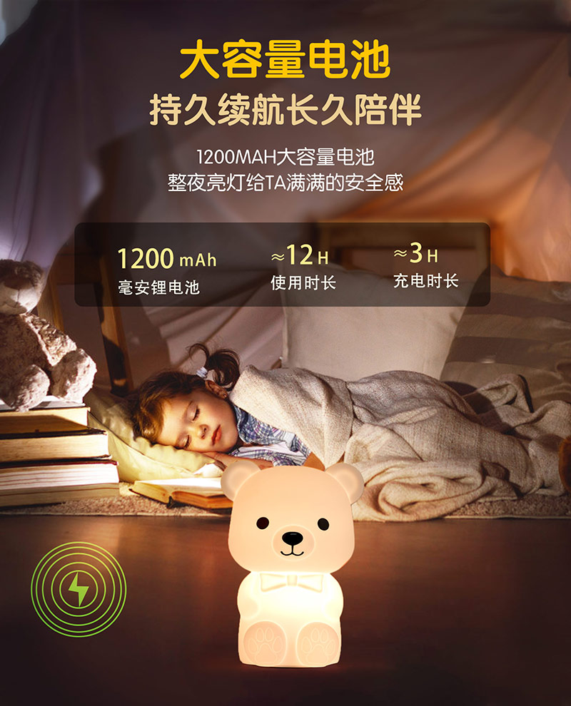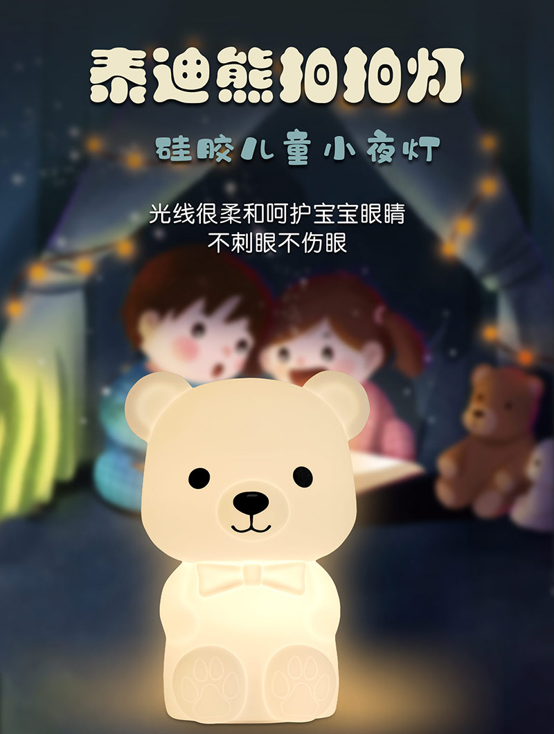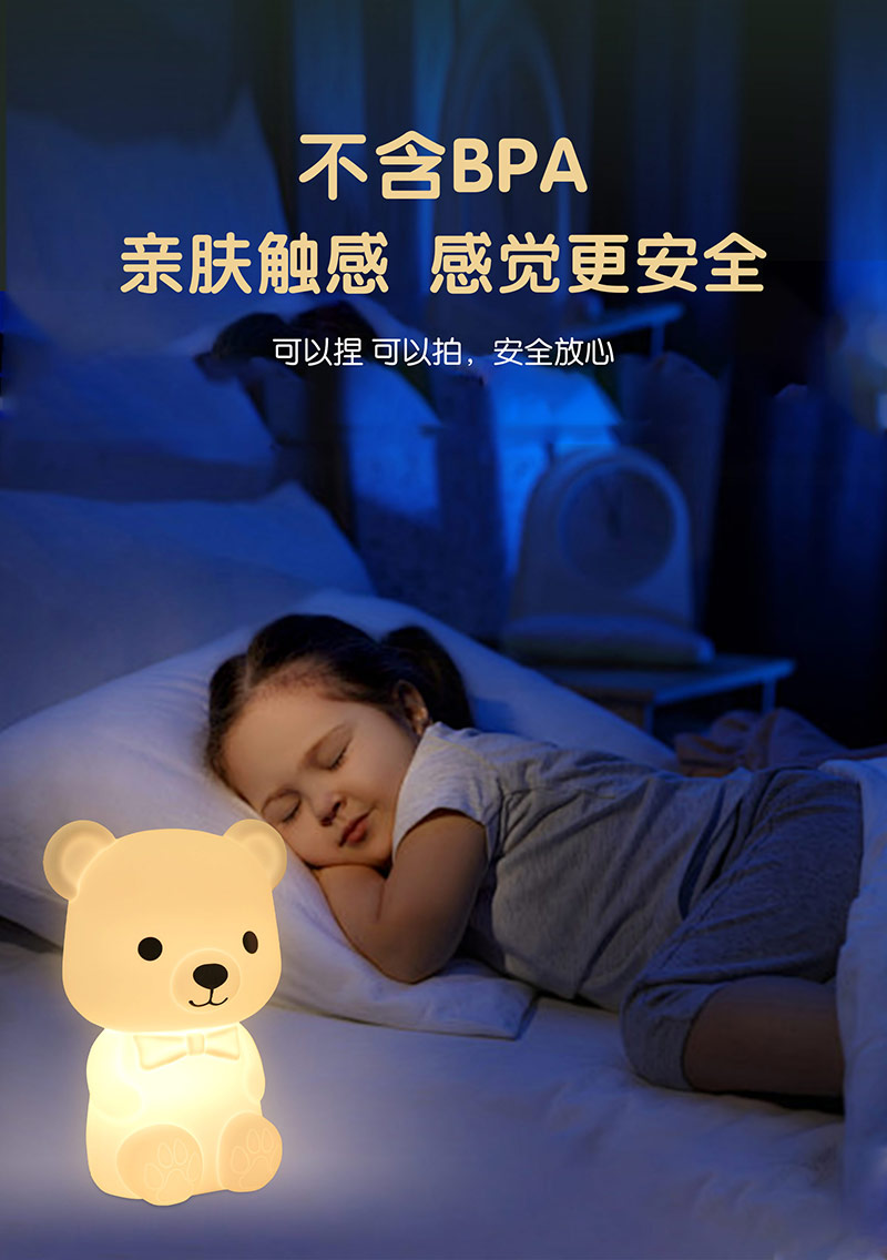 泰迪熊硅膠臥室氛圍床頭伴睡小夜燈拍拍燈廠家跨境批發(fā)
